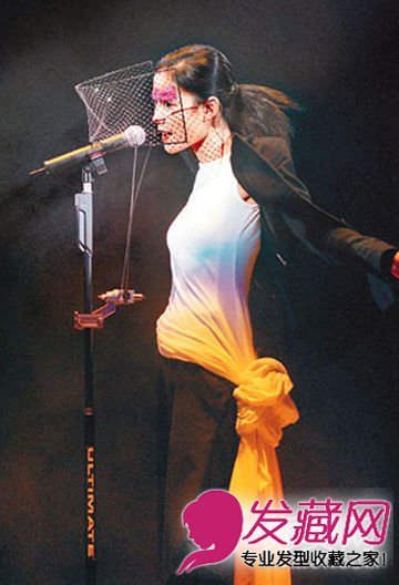 真正意义上说,这个网并不能算头饰,由于它是装在话筒架子上的。可是当王菲把头伸进去最先歌颂的时间,这个网就酿成一种对她头部的装饰啦,提及来,也能委曲算是一种“头饰”吧?这个造型让简朴的马尾生动个性起来。