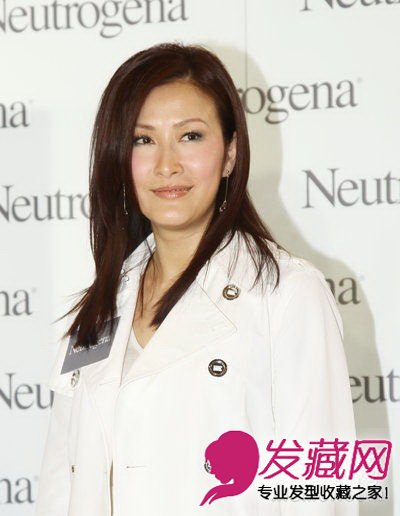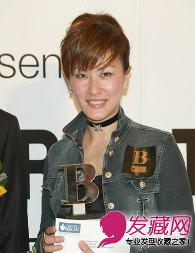 圆弧的刘海轮廓,把陈慧珊的脸形减小了三分之一,使脸形越发细腻小巧。
