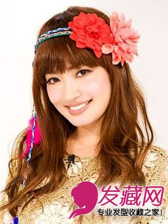 抢眼的花朵头饰可是让可爱度大幅提升的适用法宝。让单调的卷发有了亮点,女人味十足哦。