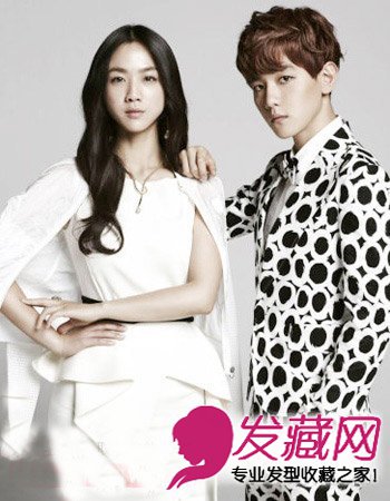 伯贤身穿花色西装,棕色的烫发帅气可爱与身穿一身白色华服的长发汤唯,魅力十足。