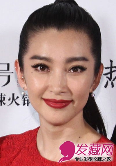 简单的马尾扎发更显青春活力,红唇配上露额的长发很显时尚气质。