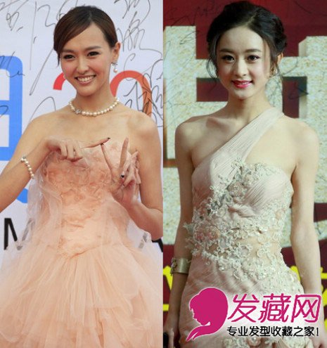 礼服是明星们经常要用到的,经典的盘发发型是女星出席活动中最常见款。赵丽颖的这款编发盘发发型很是乖巧可爱,蓬松的卷发更显精致小脸。与她相比,唐嫣的这款盘发就简单的多。