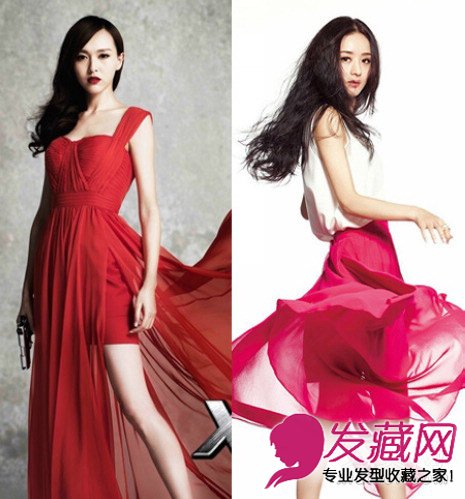 长卷发也是女星的扮靓神器,性感的红色长裙搭配披肩的长卷发是不是很有FEEL呢?唐嫣的这款偏分长卷发发型很好的修饰脸型,有效小脸显瘦。而赵丽颖这款中分小卷发型则更加可爱,是今年的流行款。