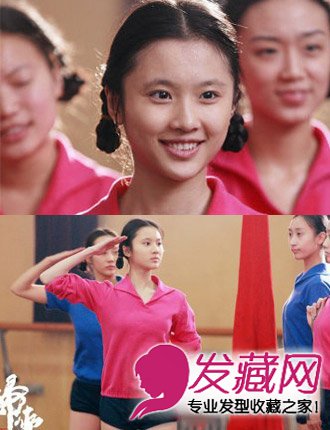 张慧雯在剧中的剧照发型,可爱的麻花辫扎成小发髻的造型更显俏皮气质,中分发型、素颜,搭配优美的舞姿更显天真活力。