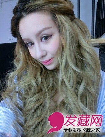 具有日系风格的亚麻色长卷发,及腰长度,散发出浪漫感,发髻公主编发,甜美可人。