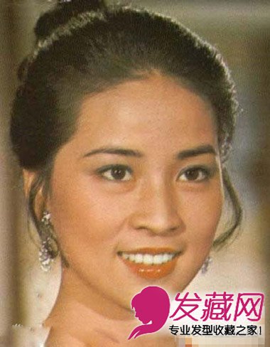 简单的盘发造型,有点类似于现在的丸子头,清爽的露额造型最显自然美丽,淡淡的笑容很是优雅。