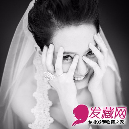 戚薇的婚纱照发型,蓬松有致的新娘盘发,幸福的笑容,头纱尽显唯美浪漫感。