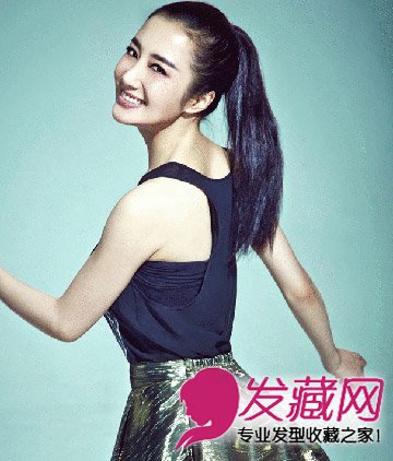 清爽的马尾辫扎发发型,直发扎成高马尾,很显时尚范的一款发型,搭配粗眉妆更显精神。