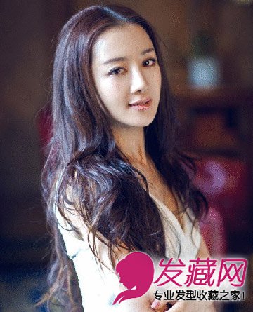 中分的长卷发发型,齐腰 的长卷发很是甜美,大波浪的卷发设计更添性感妩媚气质。