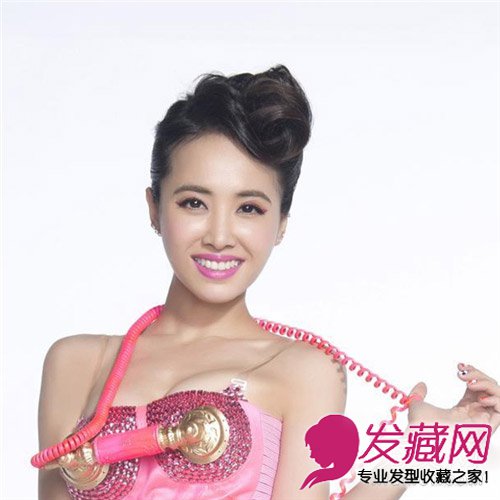 复古的手推波纹刘海,然后向上进行盘发,整个造型都非常复古,额前也显得非常清爽,如果搭配一些小帽子配饰的话,还是不错的一款造型。但是搭配上Jolin的服装,那小编就又被雷到啦!