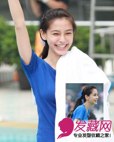 这是跑男第一期中杨颖的造型,简单马尾造型十分的甜美有范,而其实刘海的编发增添时尚感,MM们也可以学学。