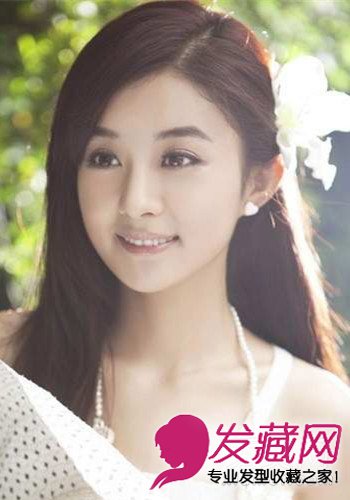 清纯的长直发发型,最简单的长直发搭配花朵的发饰清纯如百合,校花范十足。