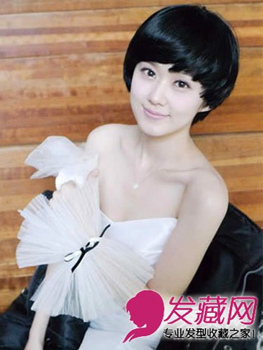简单齐刘海的黑色短发显示精致小脸蛋,凸显白皙皮肤。