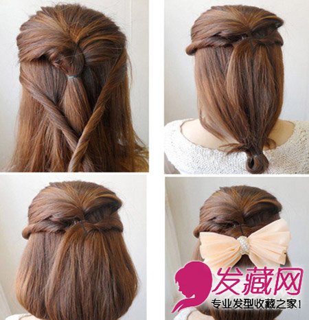 3、把最后发尾的头发向里收起来,用发夹固定。
