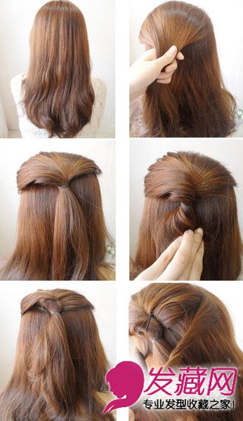 1、将上半部分的头发扎起,转一圈并用发夹固定弧度。