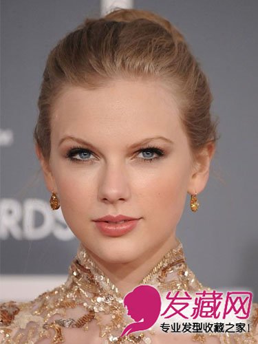 将金色的头发全部盘卷的后,突出的五官精致又美丽,体现成熟之美,典雅且庄重。