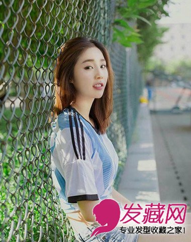 运动写真造型,棕色的齐肩发很是时尚养眼,一身运动装很是性感可爱。
