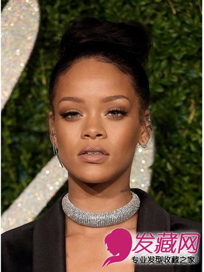 Rihanna亮相2014英国时尚大奖红毯,优雅又不失性感的装扮赢得一片赞誉。不同于以往的魅惑大浓妆,Rihanna淡雅的灰褐色系妆容让人眼前一亮,在灯光效果下如裸妆一般清爽。弯弯的柳叶眉增添一丝纯真的气质,眼妆部分只用夸张的假睫毛点缀,简洁之中气场十足,裸色唇妆与整体更加和谐。光洁高耸的盘发显露出精致的面庞,展现优雅大气的一面。