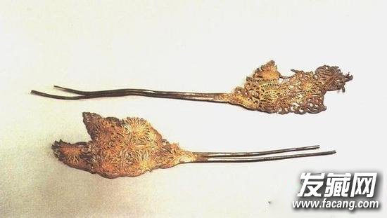 唐代开始流行使用金银打造首饰,剧照中,武如意所戴的是金钗雕花朵形,被称为钗朵。每一对钗朵都是一式两件,结构相同而图形相反,可以左右对称插戴,这种金银钗以镂花图案最为多见。