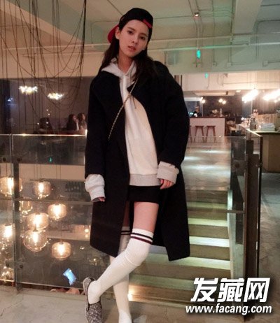 生活中的私照,随性自然,长发披在肩头,搭配鸭舌帽更显青春活力。