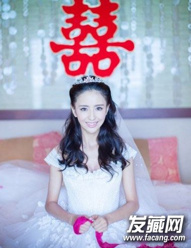 佟丽娅的新娘造型超有中式风味,高扎的公主头配上王冠甜美爆表。
