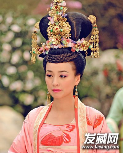 高高盘起的发髻更是权力的一种象征,额头的辫子盘发亦显精致华贵。