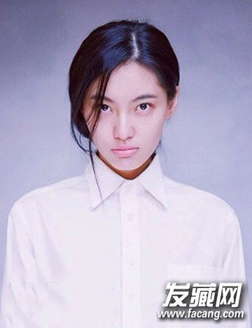 简约的挽发造型,文艺范十足,精致的鹅蛋脸穿搭白衬衫,几缕刘海拂过脸颊,女人味十足。