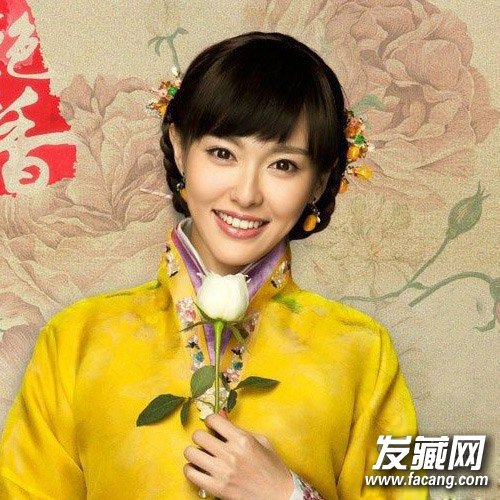 这样民国造型的唐嫣看起来很是华丽,明黄色彰显贵气,编发盘发搭配齐刘海又为这款造型注入了新的活力。