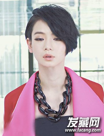 别致裁剪的红色西装,个性夸张的项链,侧分的女生长刘海修饰脸颊,妆容淡雅,魅力潮范十足。