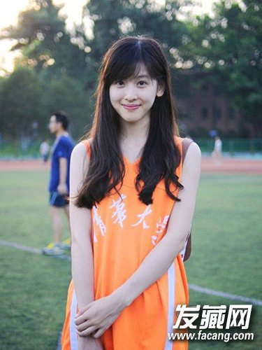 斜分的长刘海稍微遮盖额头,十分修颜显瘦,简单黑色长发自然披肩就已经很吸睛。