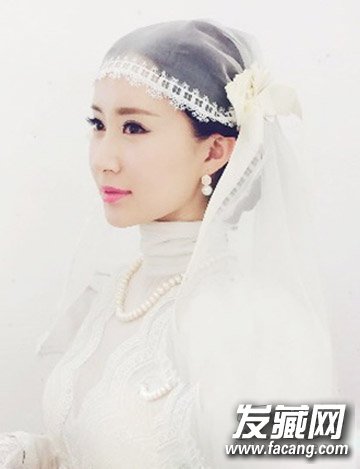 婚纱造型的舒畅,白色的头纱包裹着头发,一身简洁的白色礼服,淡淡的妆容,诠释出了一个民国范典雅新娘形象。