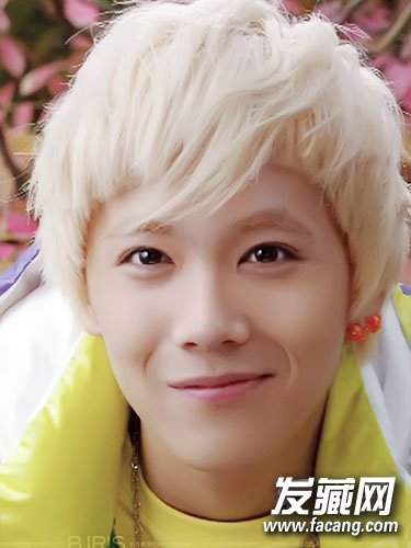 将刘海剪成圆弧造型,额前留下一小撮头发,加上潮感十足的银白色染发修颜瘦脸,凸显李弘基的俏皮可爱。