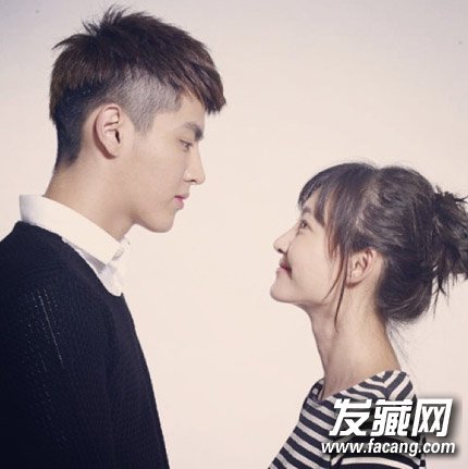 王丽坤与吴亦凡合照,齐刘海花苞头让王丽坤看起来特别显小,侧边留下两缕长发更显温柔气质。