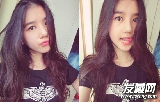 将长发披下来,瞬间显得有几分妩媚了,比扎发的时候要成熟一些,中分长卷发圆脸秒变瓜子脸。