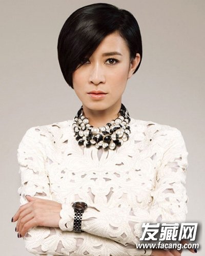 佘诗曼的三七分的短发很显成熟女人味,黑色发色彰显成熟稳重感,很适合OL的一款发型。