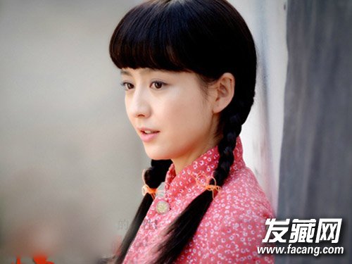 两个俏皮的麻花辫搭在两肩,一身红色的小棉服,充满着村花般的单纯乖巧。