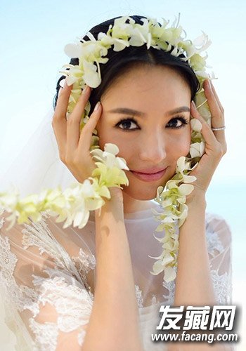 同样白衣飘飘清新唯美的还有张梓琳,尽管不算是花朵发饰,但将这洁白的花朵穿起,围绕成发箍状也是十分浪漫,双手捧脸让大高个也有了小女生的娇美。