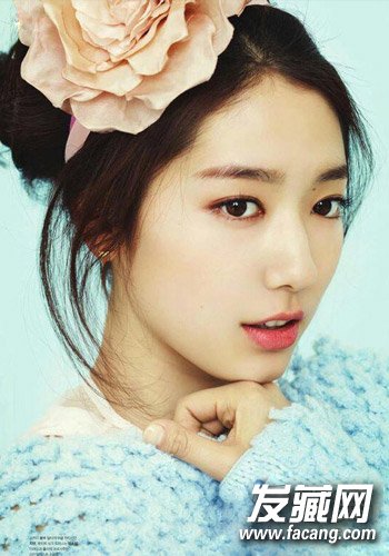 朴信惠的这款戴花造型更像是天真烂漫的邻家女孩,扎一个松散的韩系丸子头搭配粉嫩花朵,碎发散落两颊,呈现出清新自然的公主范,更多一份温暖的感觉。