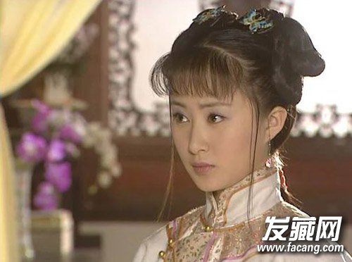 再看看这款古装造型,萌萌大的空气刘海,甜美的双发髻造型,我见尤怜呀。