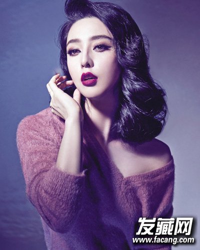 复古摩登的造型一直很适合范冰冰,这中长款的复古烫发充分展现出女人味,层次感的波浪线条重现年代感的发型。
