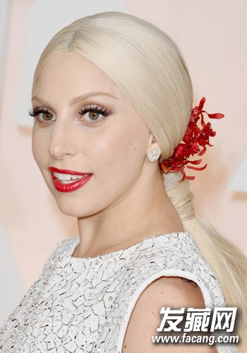 gaga姐染金发有一阵子了,前不久格莱美上这款犹如假发般一丝不苟的低扎发的确让人有些“惊艳”。浅到泛白的金发色造型精致,对比出鲜红的碎花和红唇,细节处处都是看点。