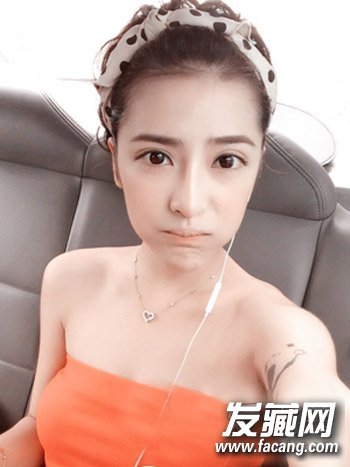 小模特沈亚婷,大眼睛,瓜子脸长相时尚清纯,长发盘起来,发带diy,橘色小礼服,韩范十足。