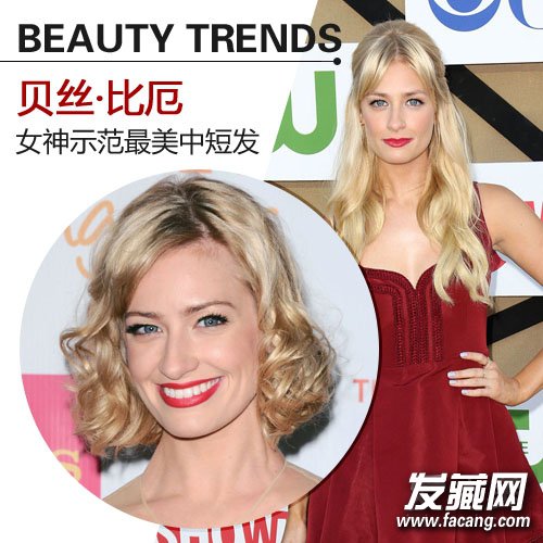 《破产女孩》贝丝·比厄的中发造型颇具复古风,金色的齐肩卷发烫出浓密发卷,偏分的发帘露出饱满额头,大气优雅。
