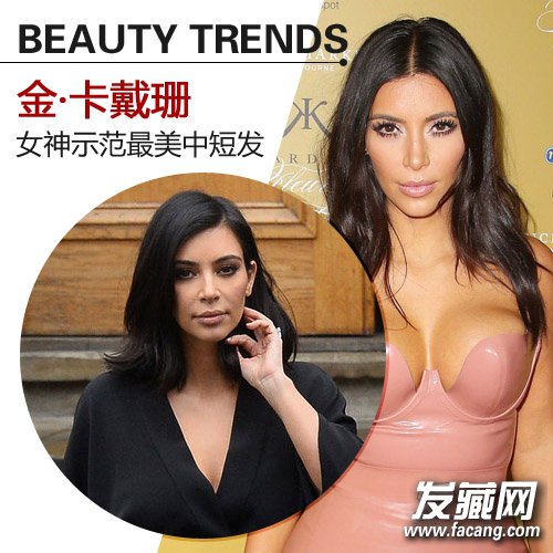 卡戴珊将中发自然侧分后披散在肩头,两侧头发沿发根开始卷出微微的S型弧度,令头发呈现蓬松效果,自然的黑色染发让整个造型颇具质感。