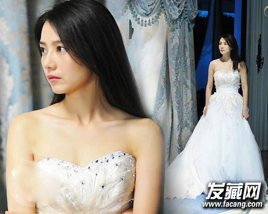 高圆圆的一头黑发可算是标志了,简单造型很是养眼,飘逸的刘海,洁白的婚纱,唯美浪漫。