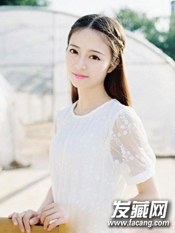 身着白色蕾丝连衣裙的女孩,变身甜美公主,中分直发,两颊采用编发打造乖巧的公主头,清新淑女。