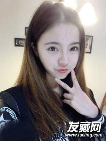 亚麻棕色的长直发发型,中分刘海更能完美凸显可人的小V脸型,大眼睛小嘴巴,纯真俏皮。
