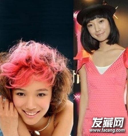 王珞丹中间一撮红色的头发还真够雷人的,还是粉色裙子与黑色学生头的王珞丹看起来养眼多。