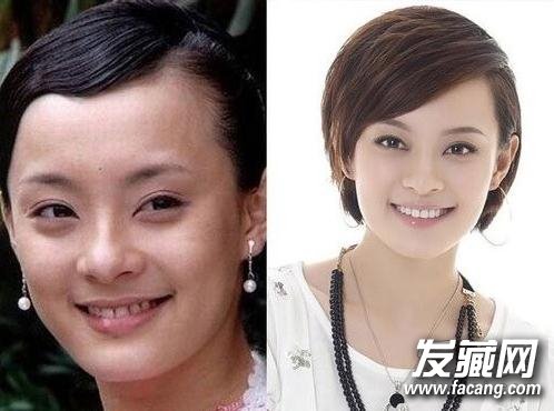 姚晨一头卷卷的短发配上珍珠项链让她看起来老气横秋,而穿着简约纯白裙,留着中分微卷中长发的姚晨明显要时尚千万倍。