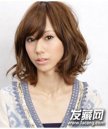 斜分的刘海搭配上不规则的卷烫,不同之处在于此款头发层次更加轻盈,塑造出随意的感觉,无负担也更显清新。